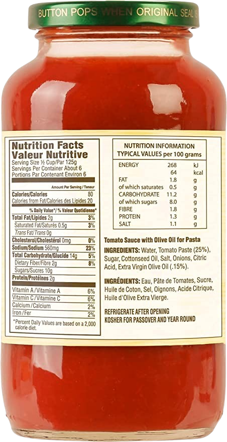 Smooth and flavorful authentic marinara sauce. Gluten Free. Kosher for Passover. Certified by the Volover Rav. Certified by the OU.