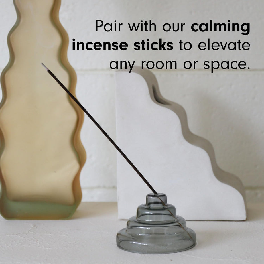 The Glass Meso Incense Holder in Gray combines architectural inspiration with sleek durability to elevate your daily aromatherapy routine.