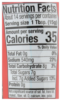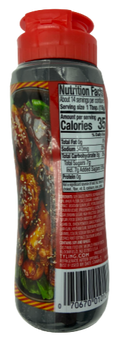 Ingredients: Soy Sauce (Water, Soybeans, Wheat, Wheat Bran, Wheat Flour, Salt, Sugar, Caramel Color, Yeast Extract, Disodium Guanylate, Potassium Sorbate And Sodium Benzoate [Preservatives], Sucralose), Malt Syrup, Sugar, Brown Sugar, High Frucrose Corn Syrup, Salt, Vinegar, Food Starch-Modified, Apple Juice Concentrate, Sesame Oil, Onion Powder, Garlic Powder, Citric Acid, Guar Gum, Xantham Gum, Sodium Metaphosphate, Caramel Color, Sodium Benzoate (Preservative), Pepper Licorice Root Extract, Disodium Guanylate.