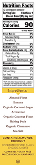 Ingredients: Almond Flour Banana Organic Coconut Sugar Arrowroot Organic Coconut Flour Baking Soda Organic Cinnamon Sea Salt