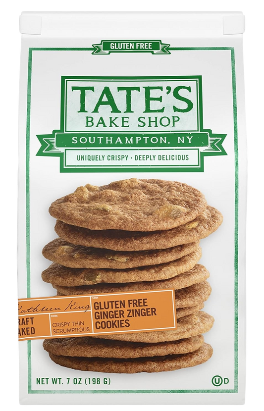 Ingredients: Crystallized ginger (ginger, sugar), Rice flour, Butter, Cane sugar, Brown cane sugar, Eggs, Natural vanilla flavor, Salt, Baking soda, and Xanthan gum.