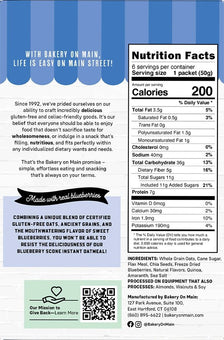 Ingredients: Certified Gluten Free Whole Grain Oats, Cane Sugar, Flax Meal, Chia Seeds, Freeze Dried Blueberries, Natural Flavors, Quinoa, Amaranth, Sea Salt