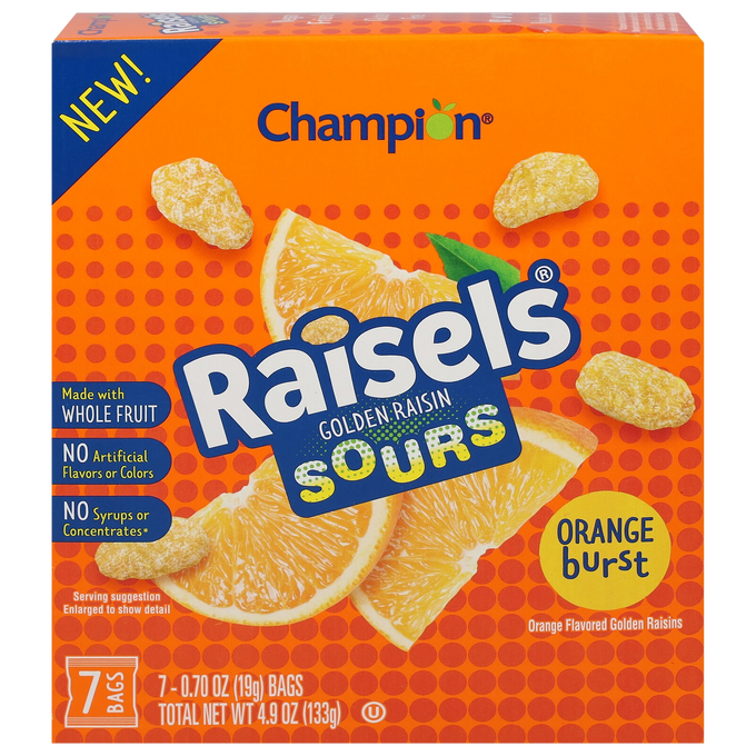 Ingredients: Golden raisins, sugar, natural flavors, citric acid, sulfur dioxide for color retention.