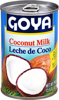 GOYA Coconut Milk 13.5 Oz. This creamy milk is made from the pressing of ripe coconut meat and doesn’t contain gums, thickeners or stabilizers. Unlike GOYA® Cream of Coconut, it is unsweetened and can be added to sweet and savory dishes to add a rich coconut flavor.