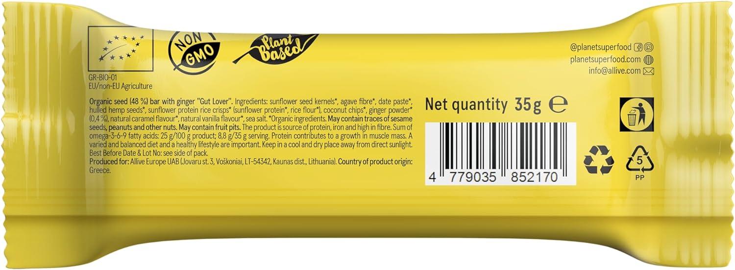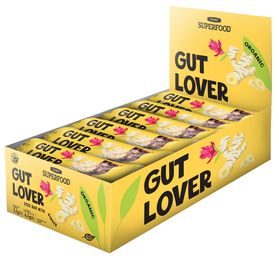 - The GUT LOVER seed bar contains ginger root, which has been used for thousands of years in various traditions, which not only provides a delicate savory taste, but also supports the digestive enzymes in the stomach and protects against toxins, pathogens and stomach infections.