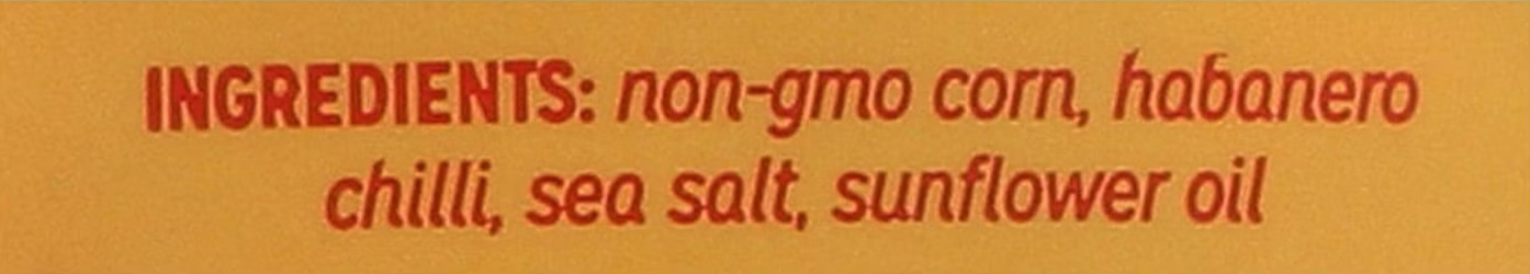 Ingredients: Non-gmo corn, habanero chilli, sea salt, sunflower oil.