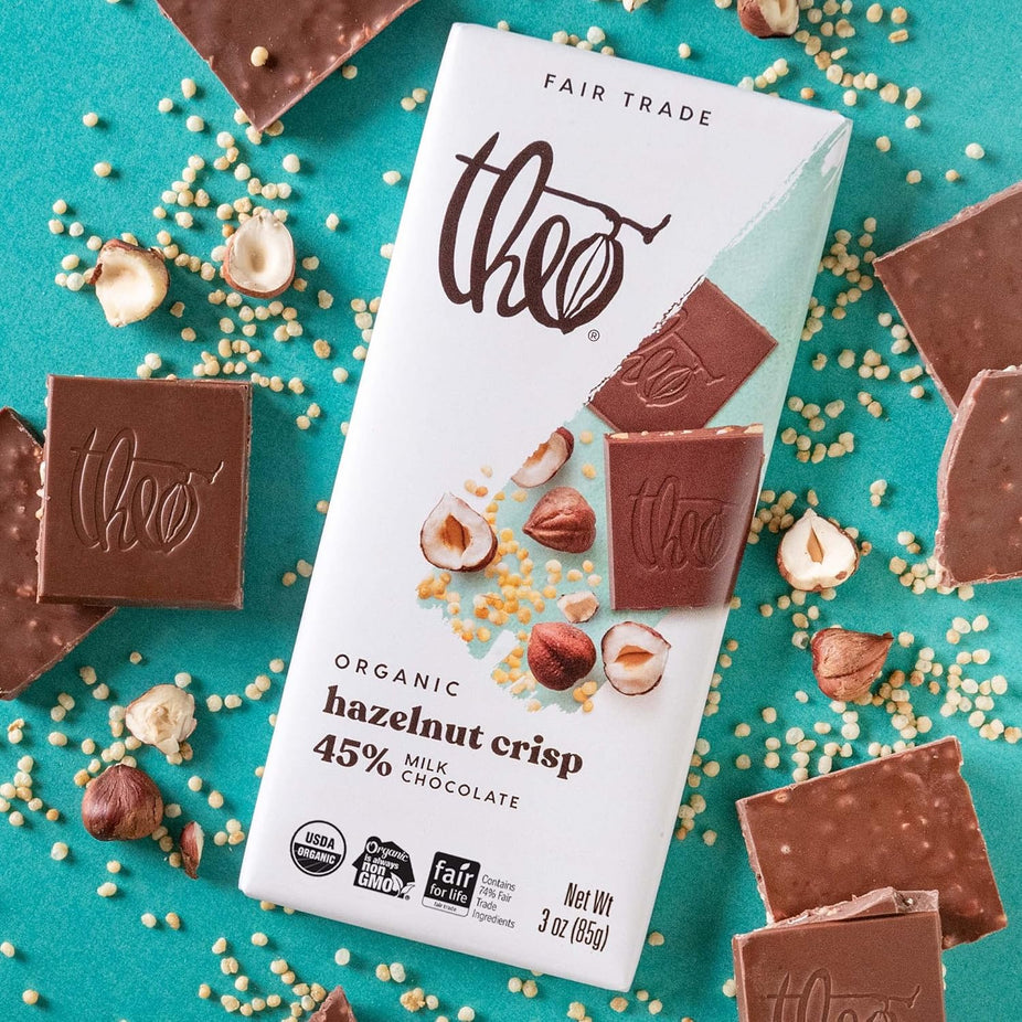 Experience a chocolate bar that’s as rich in flavor as it is in ethical sourcing with Theo Chocolate Hazelnut Crisp Milk Chocolate Bar!