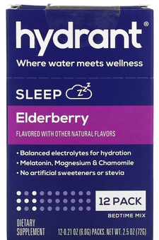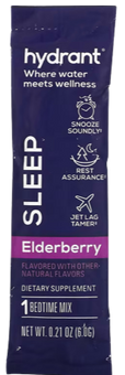 Our science-backed products focus on hydration, daily performance and mental wellbeing to help you feel your best- anytime, anywhere. Hydrant SLEEP Elderberry is made with our proprietary blend of essential electrolytes, 3 mg of melatonin and was scientifically designed to promote better quality sleep. It also includes chamomile, magnesium, GABA and L-theanine for muscle relaxation and calmness. Bedtime has never been easier.