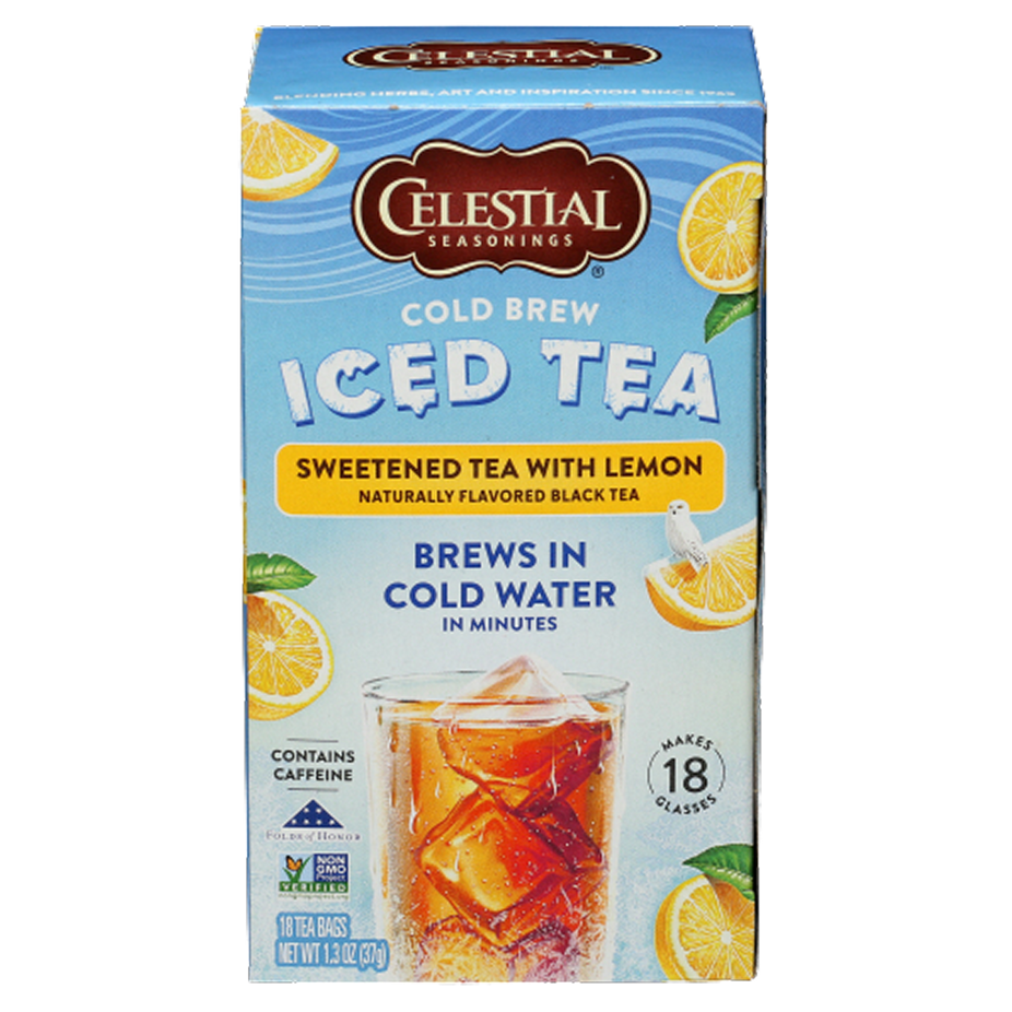 The Iced Tea Cold Brew Sweet Lemon (18 Bags) makes it easy to enjoy a refreshing glass of iced tea with a zesty twist, anytime you like.