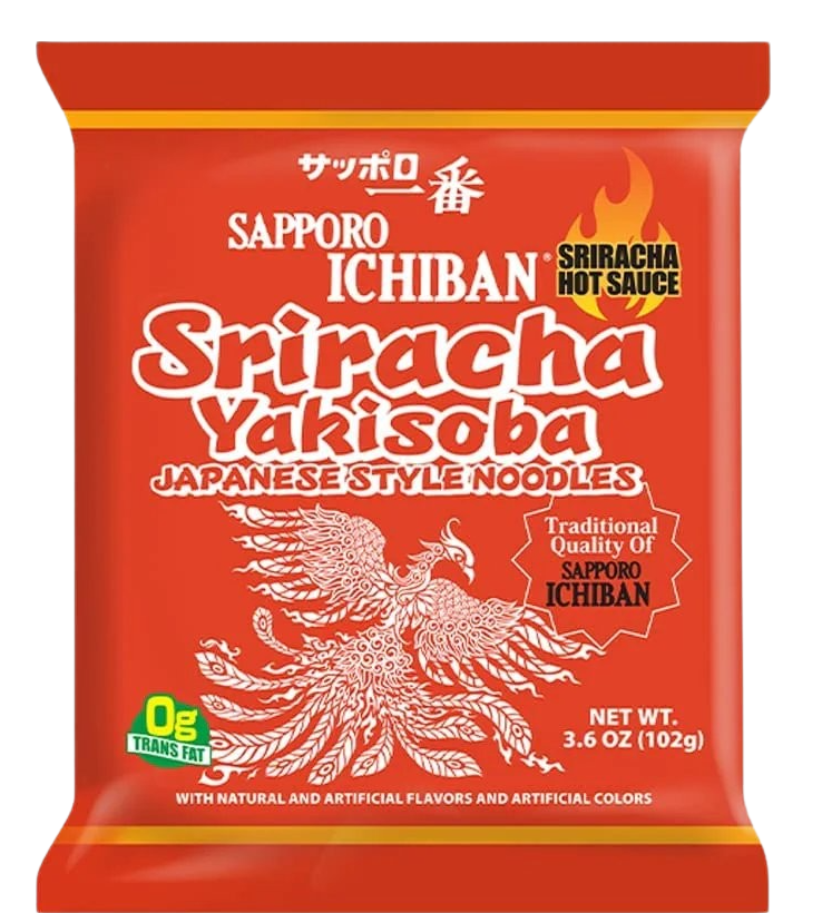 Ingredients: Oriental Noodles: Enriched Wheat Flour (Wheat Flour, Niacin, Reduced Iron, Thiamine Mononitrate, Riboflavin, Folic Acid), Palm Oil (Tbhq & Citric Acid Added To Protect Flavor), Salt, Sodium Carbonate, Sugar, Monosodium Glutamate, Tocopherols (Derived From Soybean), Potassium Carbonate. Powdered Seasoning: Sugar, Salt, Monosodium Glutamate, White Distilled Vinegar Powder (Maltodextrin, White Distilled Vinegar), Garlic Powder, Soy Sauce Powder (Soy Sauce (Wheat, Soybeans, Salt), Maltodextrin, Salt), Spices, Yeast Extract, Onion Powder, Disodium Guanylate, Disodium Inosinate, Citric Acid, Fermented Wheat Protein (Wheat Protein, Salt, Maltodextrin), Tricalcium Phosphate, Caramel Color, Chili Type Flavor (Sesame Oil, Safflower Oil, Olive Oil, Natural Flavors), Yellow#6 Color, Disodium Succinate, Red #4 Color, Natural Flavor.