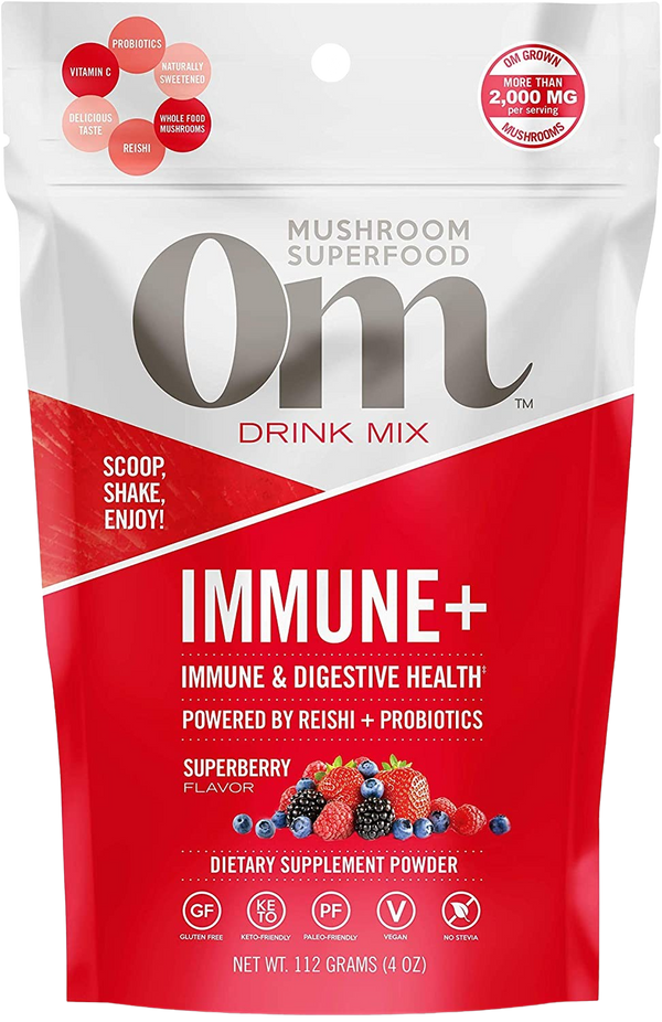 - Each serving of Om immune+ drink mix contains 2, 500mg of certified organic whole food mushroom powder with a full spectrum of nutrients.