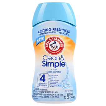The Arm & Hammer Clean & Simple In-Wash Scent Booster brings a burst of freshness to your laundry with a crisp, clean fragrance.