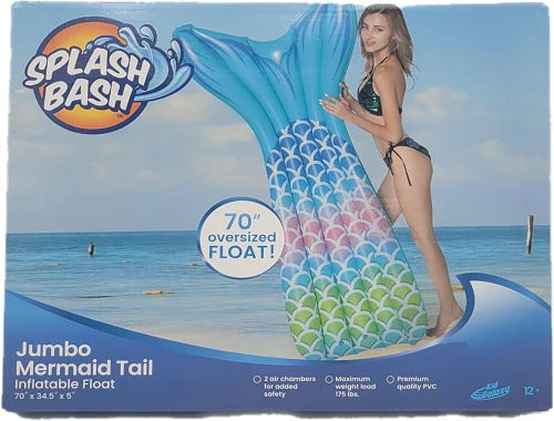 The Splash Bash Inflatable Float Jumbo Mermaid Tail transforms any swim into a magical, mermaid-inspired escape.