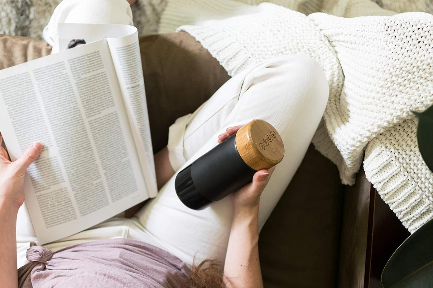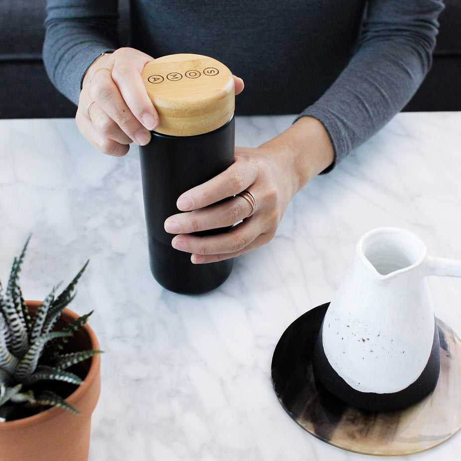 The Soma Insulated Ceramic Mug with Bamboo Lid in black offers a stylish and practical solution for enjoying your favorite beverages on the go.
