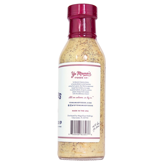 Yo Mama's Creamy Italian is handcrafted in small batches with fresh spices. Our Mama-approved recipe has no dairy, no sugar, no preservatives, no gums, and no gluten. Enjoy more salads with this delicious classic!
