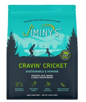 Jiminy’s Cravin' Cricket is an eco-friendly dog food delivering holistic health for adult dogs. Cricket combined with oats, quinoa, sweet potato, and other plant-based ingredients creates a nutrient-dense and delicious dog food.