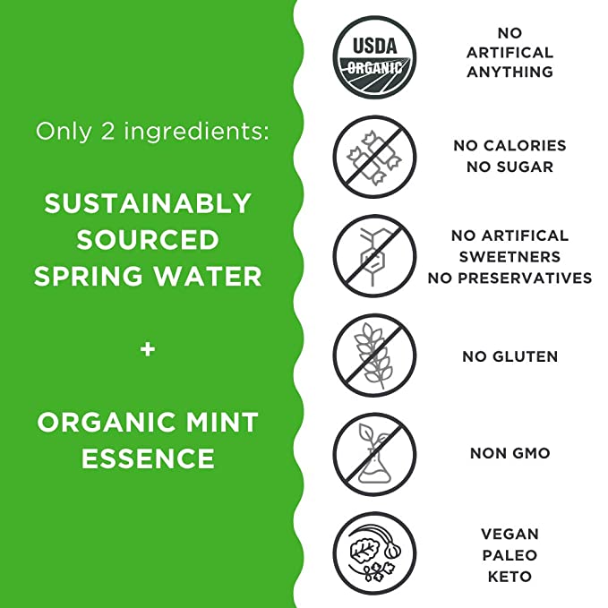 Ingredients: Sustainably Sourced Spring Water, Organic Mint Essence