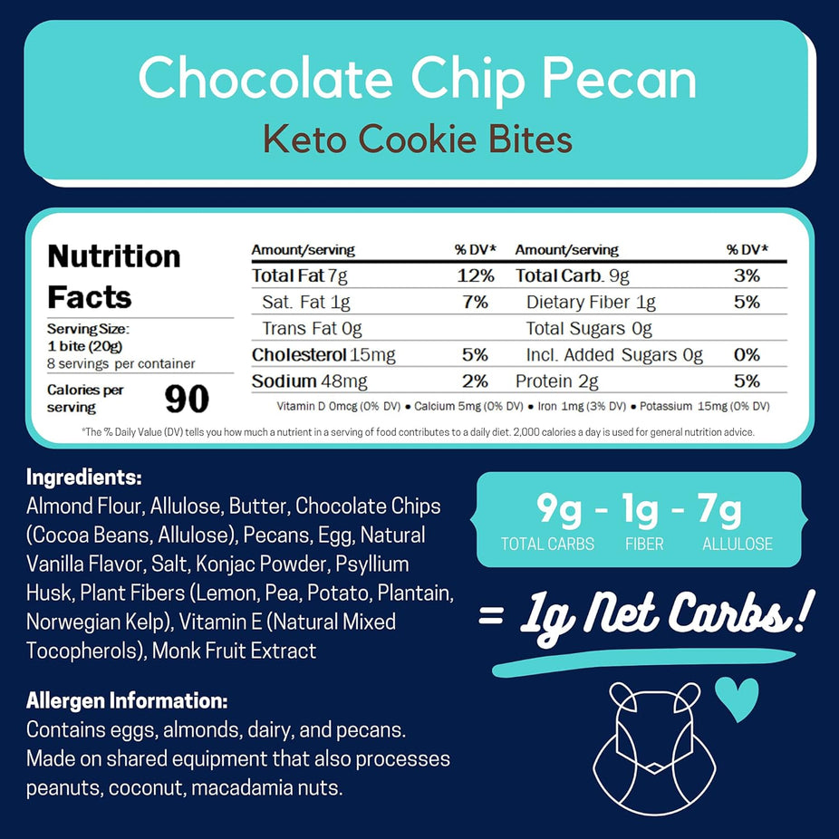 ChipMonk Keto Cookie Bites Chocolate Chip Pecan combine rich chocolate and buttery pecans in a low-carb, protein-packed snack you can feel good about.