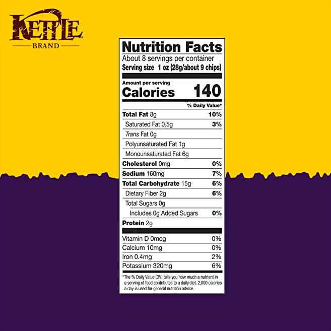 - Kettle-cooked chips: these potato chips have bold flavor and hearty kettle-cooked crunch