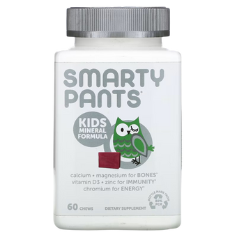 Smartypants kids mineral formula vitamins, mixed berry flavor with superstar ingredients calcium citrate magnesium citrate zinc chromium vitamin d as d3 selenium manganese molybdenum.