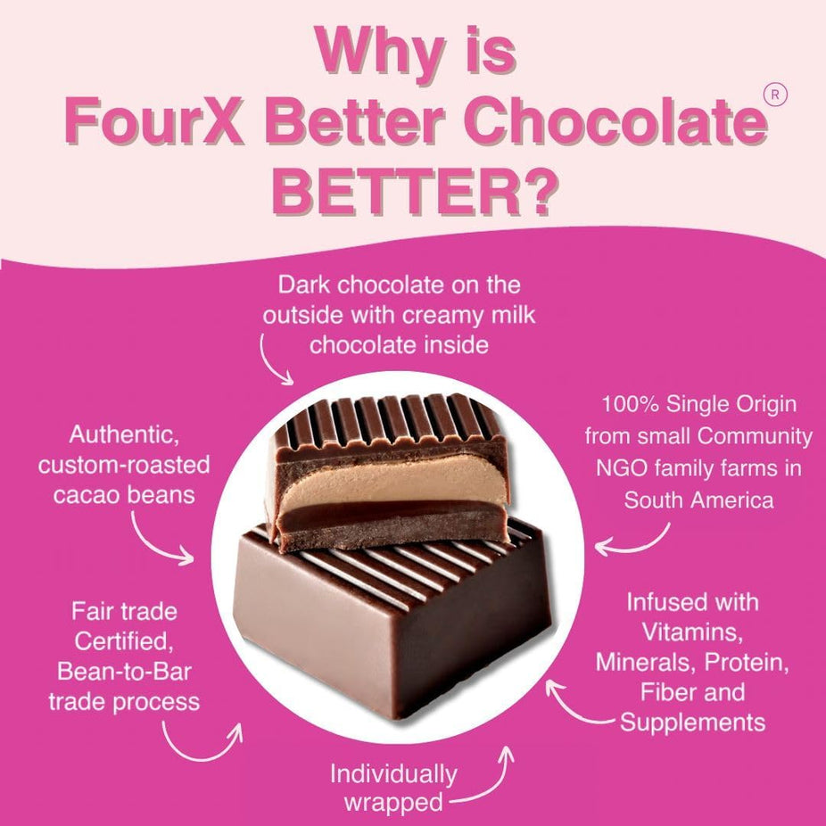 FourX Better Chocolate combines the goodness of supplements with the delight of real chocolate for a treat that supports your health.