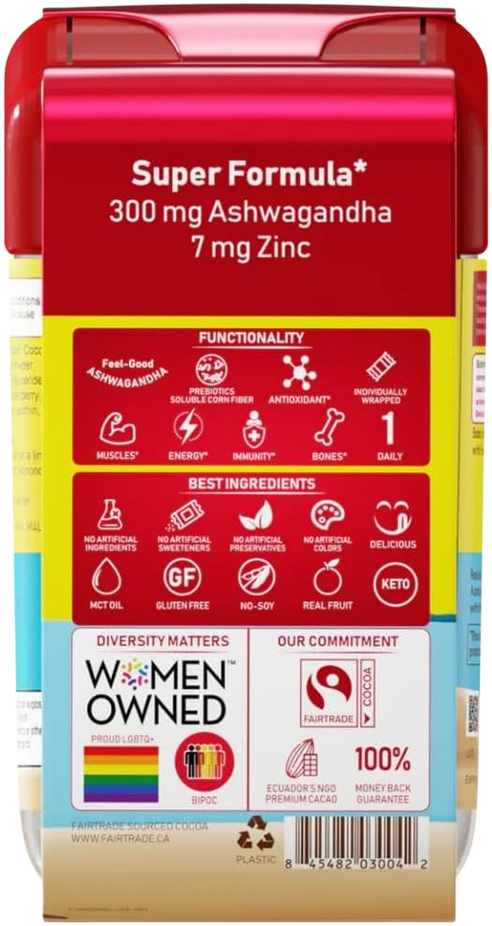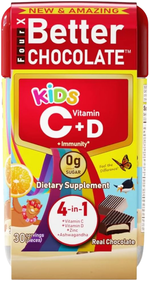 The Kids Vitamin C + D + Immunity Better Chocolate offers essential vitamins and immunity-boosting ingredients in a tasty chocolate bite.