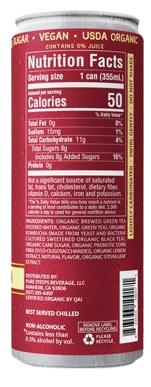 Ingredients: Organic Brewed Green Tea (Filtered Water, Organic Green Tea), Organic Kombucha (Made From Yeast And Bacteria Cultured Sweetened Organic Black Tea), Organic Cane Sugar, Organic Prebiotic Corn Fiber (Xylo-Oligosaccharides), Organic Lemon Extract, Natural Flavor, Organic Stevia Leaf Extract