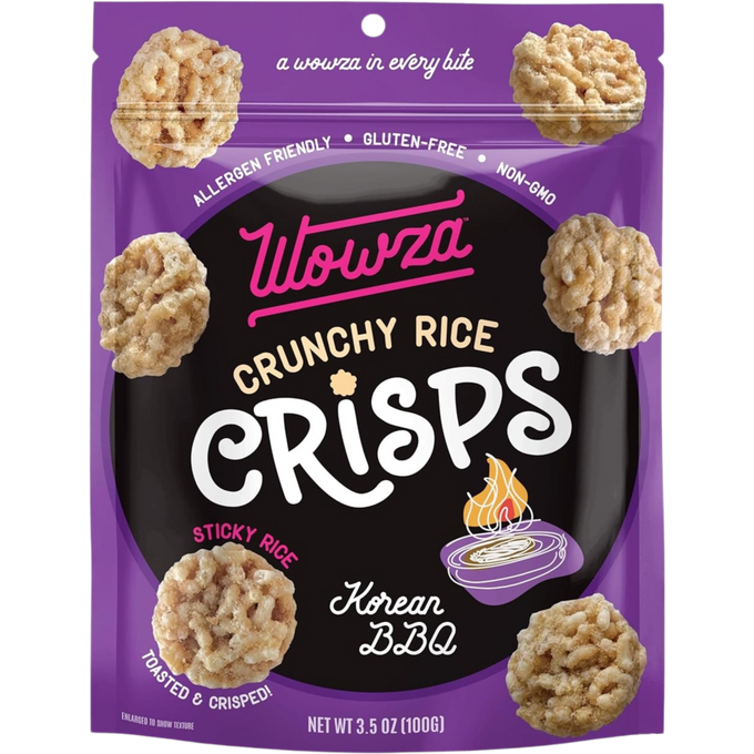 Wowza Korean BBQ Crunchy Rice Crisps are a mouthwatering twist on traditional chips, combining savory-sweet barbecue flavor with a satisfyingly crispy texture.