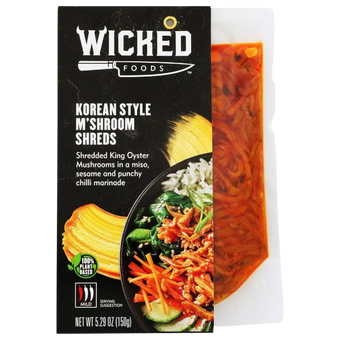 Ingredients: King Oyster Mushroom, Water, Sugar, Minced Garlic, Sesame Oil, Dried Red Pepper, Onion Puree, Dark Miso Paste (Soybean, Rice, Salt), Sunflower Oil, Tomato Paste, Paprika, Salt, Ginger, Sesame Seed, Spring Onion, Distilled Vinegar, Yeast Extract, Tapioca Starch, Chili Powder, Paprika Extract (Color).