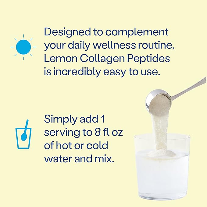The Vital Proteins Lemon Collagen Peptides Dietary Supplement delivers refreshing lemon flavor along with the collagen support customers rely on for hair, skin, nails, bones, and joints.