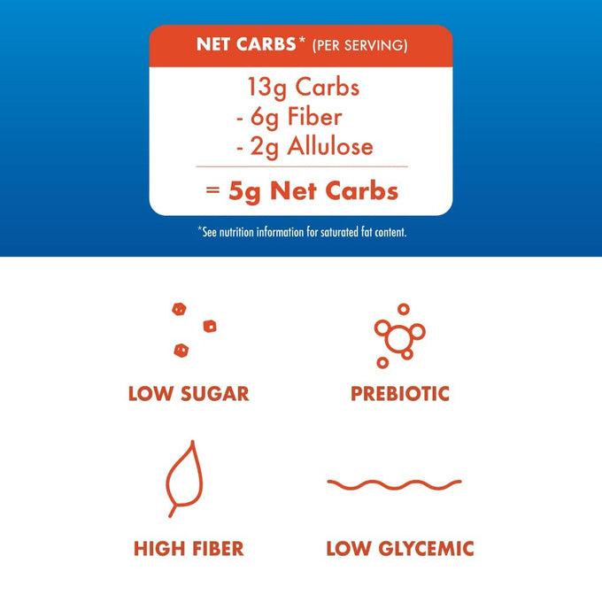 Ingredients: Palm Fruit Oil, Vegetable Siber, sugar, Milk Protein, Wheat Flour, Allulose, Sugar Cane Fiber, Cocoa Processed With Alkali, Wheat Starch, Oat Fiber, Sea Salt, Baking Soda, Chocolate Extract, Sunflower Lecithin, Vanilla Extract, Stevia Leaf Extract.