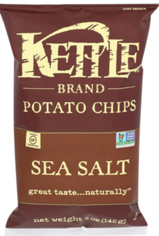 KETTLE BRAND SEA SALT POTATO CHIPS ARE MADE WITH JUST THREE SIMPLE INGREDIENTS SO YOU CAN FEEL GOOD ABOUT THE TASTE AND INGREDIENTS IN THESE CHIPS. OUR GLUTEN-FREE KETTLE COOKED CHIPS DO NOT CONTAIN ANY TRANS FAT, SUGARS OR CHOLESTEROL ALLOWING YOU TO ENJOY THE NATURAL FLAVOR. THIS BAG CONTAINS 5 OZ. OF SEA SALT POTATO CHIPS.