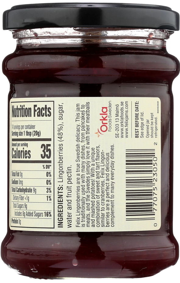 Ingredients: Lingonberries (48%), Sugar, Water, and Fruit Pectin.