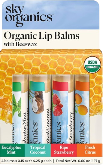 Ingredients: TAHITIAN VANILLA LIP BALM INGREDIENTS: HELIANTHUS ANNUUS (SUNFLOWER) SEED OIL*, CERA FLAVA (BEESWAX)*, COCOS NUCIFERA (COCONUT) OIL*, FLAVOR*, TOCOPHEROL (VITAMIN E), ROSMARINUS OFFICINALIS (ROSEMARY) LEAF EXTRACT*, CALENDULA OFFICINALIS (MARIGOLD) FLOWER EXTRACT*. *CERTIFIED ORGANIC INGREDIENT. WILD CHERRY LIP BALM INGREDIENTS: HELIANTHUS ANNUUS (SUNFLOWER) SEED OIL*, CERA FLAVA (BEESWAX)*, COCOS NUCIFERA (COCONUT) OIL*, FLAVOR*, TOCOPHEROL (VITAMIN E), ROSMARINUS OFFICINALIS (ROSEMARY) LEAF EXTRACT*, CALENDULA OFFICINALIS (MARIGOLD) FLOWER EXTRACT*. *CERTIFIED ORGANIC INGREDIENT. EUCALYPTUS MINT LIP BALM INGREDIENTS: HELIANTHUS ANNUUS (SUNFLOWER) SEED OIL*, CERA FLAVA (BEESWAX)*, COCOS NUCIFERA (COCONUT) OIL*, MENTHA PIPERITA (PEPPERMINT) LEAF OIL*, EUCALYPTUS GLOBULUS (EUCALYPTUS) OIL*, TOCOPHEROL (VITAMIN E), ROSMARINUS OFFICINALIS (ROSEMARY) LEAF EXTRACT*, CALENDULA OFFICINALIS (MARIGOLD) FLOWER EXTRACT*. *CERTIFIED ORGANIC INGREDIENT. TROPICAL COCONUT LIP BALM INGREDIENTS: HELIANTHUS ANNUUS (SUNFLOWER) SEED OIL*, CERA FLAVA (BEESWAX)*, COCOS NUCIFERA (COCONUT) OIL*, FLAVOR*, TOCOPHEROL (VITAMIN E), ROSMARINUS OFFICINALIS (ROSEMARY) LEAF EXTRACT*, CALENDULA OFFICINALIS (MARIGOLD) FLOWER EXTRACT*. *CERTIFIED ORGANIC INGREDIENT. RIPE STRAWBERRY LIP BALM INGREDIENTS: HELIANTHUS ANNUUS (SUNFLOWER) SEED OIL*, CERA FLAVA (BEESWAX)*, COCOS NUCIFERA (COCONUT) OIL*, FLAVOR*, TOCOPHEROL (VITAMIN E), ROSMARINUS OFFICINALIS (ROSEMARY) LEAF EXTRACT*, CALENDULA OFFICINALIS (MARIGOLD) FLOWER EXTRACT*. *CERTIFIED ORGANIC INGREDIENT. FRESH CITRUS LIP BALM INGREDIENTS: HELIANTHUS ANNUUS (SUNFLOWER) SEED OIL*, CERA FLAVA (BEESWAX)*, COCOS NUCIFERA (COCONUT) OIL*, CITRUS AURANTIUM DULCIS (ORANGE) PEEL OIL*, CITRUS LIMON (LEMON) PEEL OIL*, CITRUS AURANTIFOLIA (LIME) OIL*, TOCOPHEROL (VITAMIN E), ROSMARINUS OFFICINALIS (ROSEMARY) LEAF EXTRACT*, CALENDULA OFFICINALIS (MARIGOLD) FLOWER EXTRACT* *CERTIFIED ORGANIC INGREDIENT.