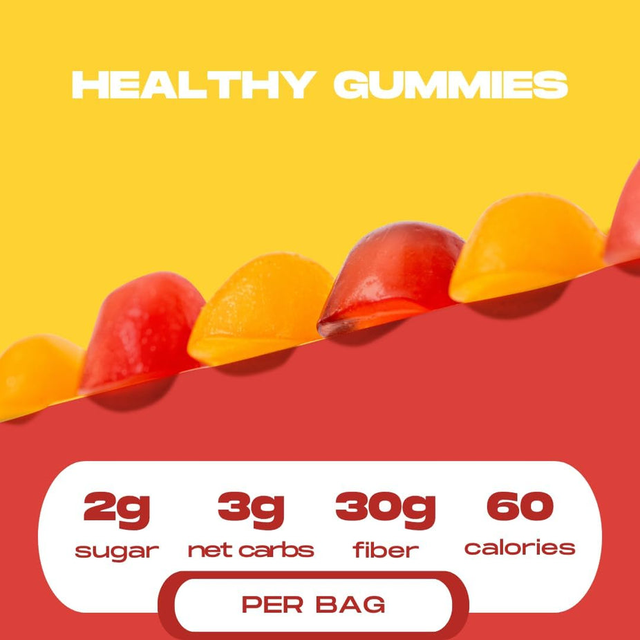 • Just 5 gummies provide 10g of fiber—equivalent to a serving of psyllium or 5 carrots