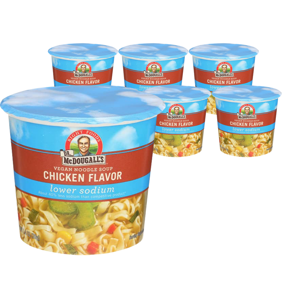 Dr. McDougall’s Lower Sodium Vegan Chicken Noodle Soup Cups offer a cozy, comforting taste of childhood favorites with a plant-based, low-sodium twist.