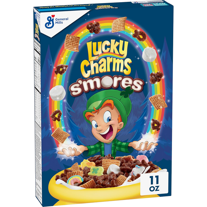 - A fun twist on s’mores—featuring Lucky Charms marshmallows, crunchy graham-flavored pieces, and chocolatey cereal
