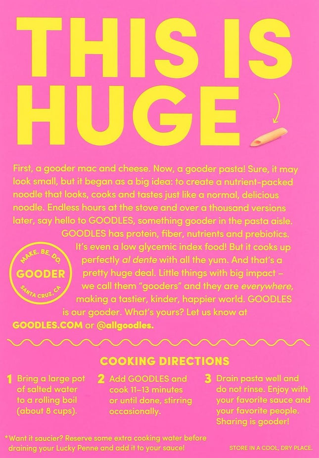 Goodles Lucky Penne Dry Pasta is a nutrient-packed twist on traditional pasta, delivering the classic taste and texture you love—with a whole lot more goodness inside.