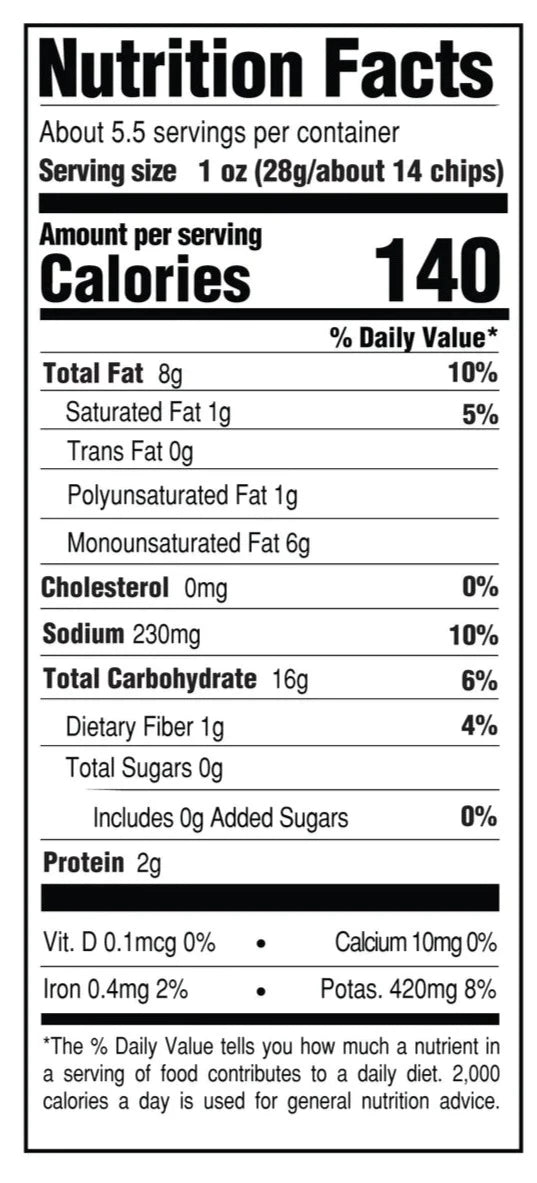 The perfect balance between an intense vinegar bite and a smooth, buttery Avocado finish. Made from an original family recipe with premium, American grown potatoes, our chips are thickly sliced and kettle cooked in small batches –guaranteeing a satisfying crunch that can be heard throughout the canyon.