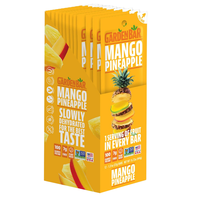 Mango Pineapple Garden Bars are a tropical delight bursting with sweet and tangy flavors. It combines the juicy essence of ripe mangoes with the refreshing zest of tropical pineapples, creating a delectable treat. Each bite offers a perfect balance of fruity goodness, tantalizing your taste buds with a tropical vacation in every mouthful. With its vibrant colors and irresistible taste, this snack is a delightful escape to paradise you can take anywhere.