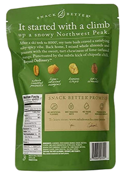 Ingredients: Almonds, Dried Mango (Mango, Sugar, Citric Acid), Peanuts, Banana Chips (Banana, Coconut Oil, Cane Sugar, Natural Flavor), Sunflower Oil, Sea Salt, Spices, Lime Powder (Juice Concentrate) Lime, Citric Acid, Natural Flavor).