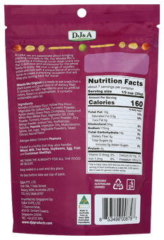 Ingredients: Noodles (Chickpea Flour, Yellow Pea Flour, Vegetable Oil, Iodised Salt, Turmeric Powder, Ajwan Seeds), Green Peas, Chickpeas, Flavoured White Peas (White Peas, Vegetable Oil, Chilli Powder, Turmeric Powder, Cumin Powder, Dry Mango Powder, Iodised Salt, Asafoetida), Sultanas, Peanuts, Vegetable Oils, Maltodextrin, Spices, Salt, Sugar, Vegetable Powders, Yeast Extract, Natural Flavor.