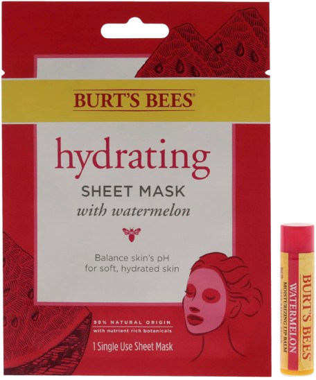 Ingredients: 1x Lip balm - is infused with beeswax to thoroughly moisturize and soften lips 1x Mask - Burt's Bees hydrating sheet mask is formulated with mandarin extract as it moisturizes and refreshes skin.