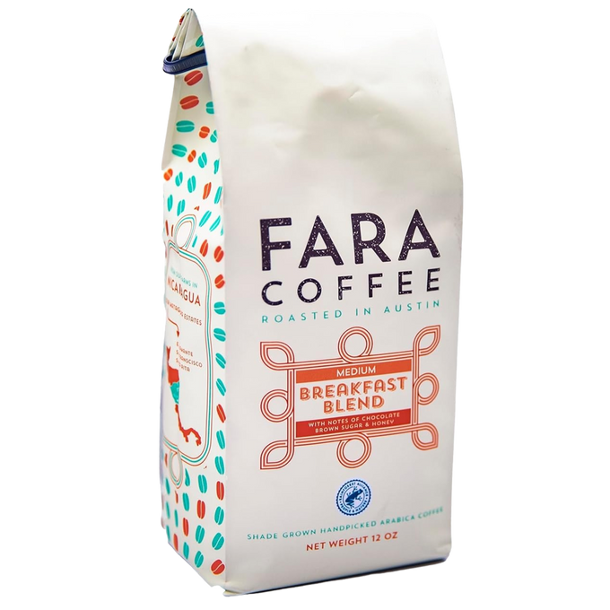 Fara Coffee Medium Roast Breakfast Blend Ground Coffee offers a smooth, balanced cup made from 100% specialty grade arabica beans grown in the rich soils of Matagalpa.