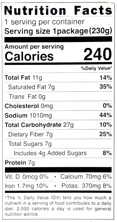 Ingredients: Water, Vegetables (Potato, Carrot, Onion), Vegetable Oils (Plam Oil, Hydrogenated Rapeseed Oil), Sauteed Onion, Vegetable Protein Block (Soy Protein, Defatted Soybean, Wheat Flour), Wheat Flour, Sugar, Food Starch Modified Curry Powder, Yeast Extract (Yeast Extract, Salt), Salt, Onion Powder, Wheat Gluten, Caramel Color, Apple Vinegar, Garlic Powder, Cumin, Black Pepper, White Pepper, Calcium Chloride, Staranise, Ginger, Celery Seed, Mustard.
