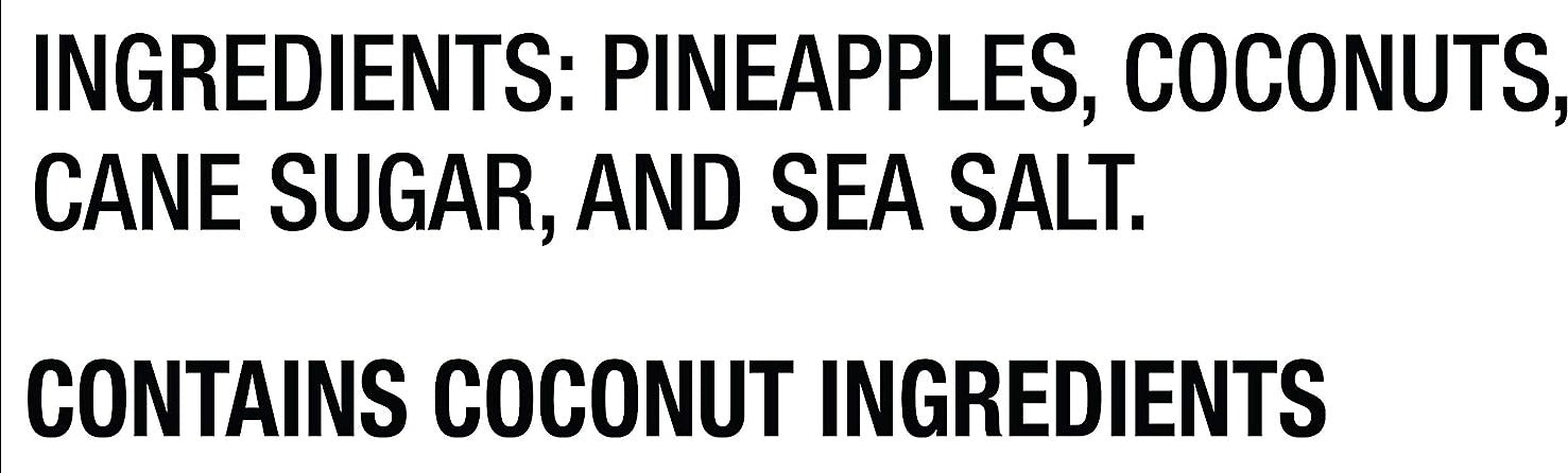 Ingredients: Pineapples, Coconuts, Cane Sugar, and Sea Salt.