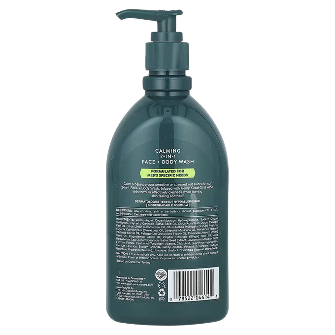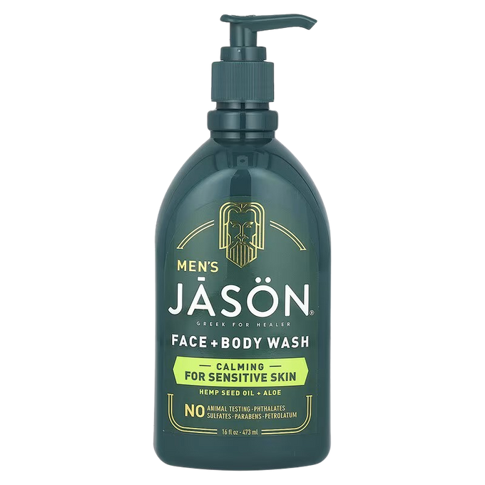 Calm & balance your sensitive or stressed out skin with Jason Men's 2-in-1 Face + Body Wash. Infused with Aloe, this formula effectively cleanses while leaving skin feeling soothed. The formula is made with safe, gentle and effective ingredients and contains no parabens, harsh sulfates, phthalates or petrolatum.