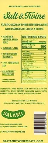 Salt and Twine’s Mezcal & Salted Lime Salami delivers a unique blend of smoky mezcal and bright citrus for a truly distinctive taste.