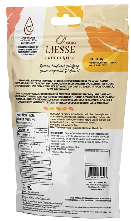 Ingredients: Natural Almond Butter, Cocoa Mass, Cocoa Butter, Erythritol, Inulin (Fiber) , Stevia Extract, Natural Vanilla Extract, Soy Lecithin.