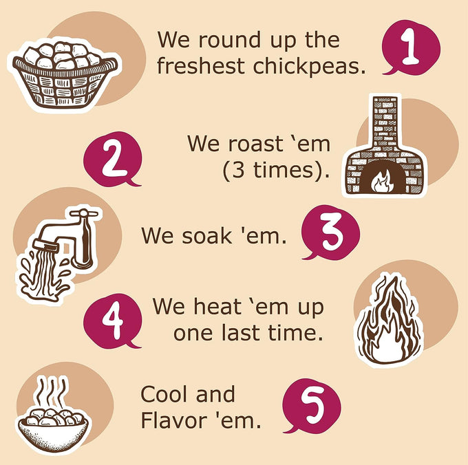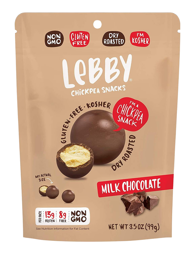 Ingredients: Dry Roasted Chickpeas and Milk Chocolate (Cocoa Butter, Cocoa Mass, Cocoa Powder, Beet Sugar, Milk Powder, Vanilla Extract, Soy Lecithin, Acacia Tree Gum, Confectioners Glaze)